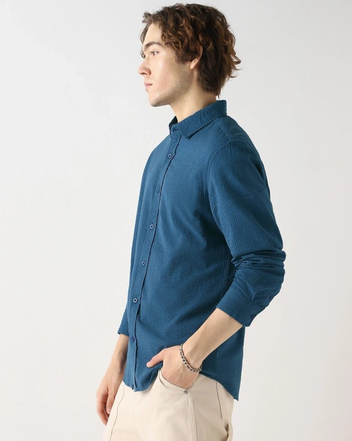 The Men’s Navy Blue Textured Shirt is a must-have for those who like their classics with a twist. The rich navy blue color and textured fabric make this shirt versatile enough to dress up or down. Rock it with khakis for a smart-casual vibe, or pair it with dark jeans for an effortlessly cool look. Finish with loafers or sneakers, and this shirt has you covered for workdays, weekends, and everything in between. It’s all about easy style with a touch of texture.